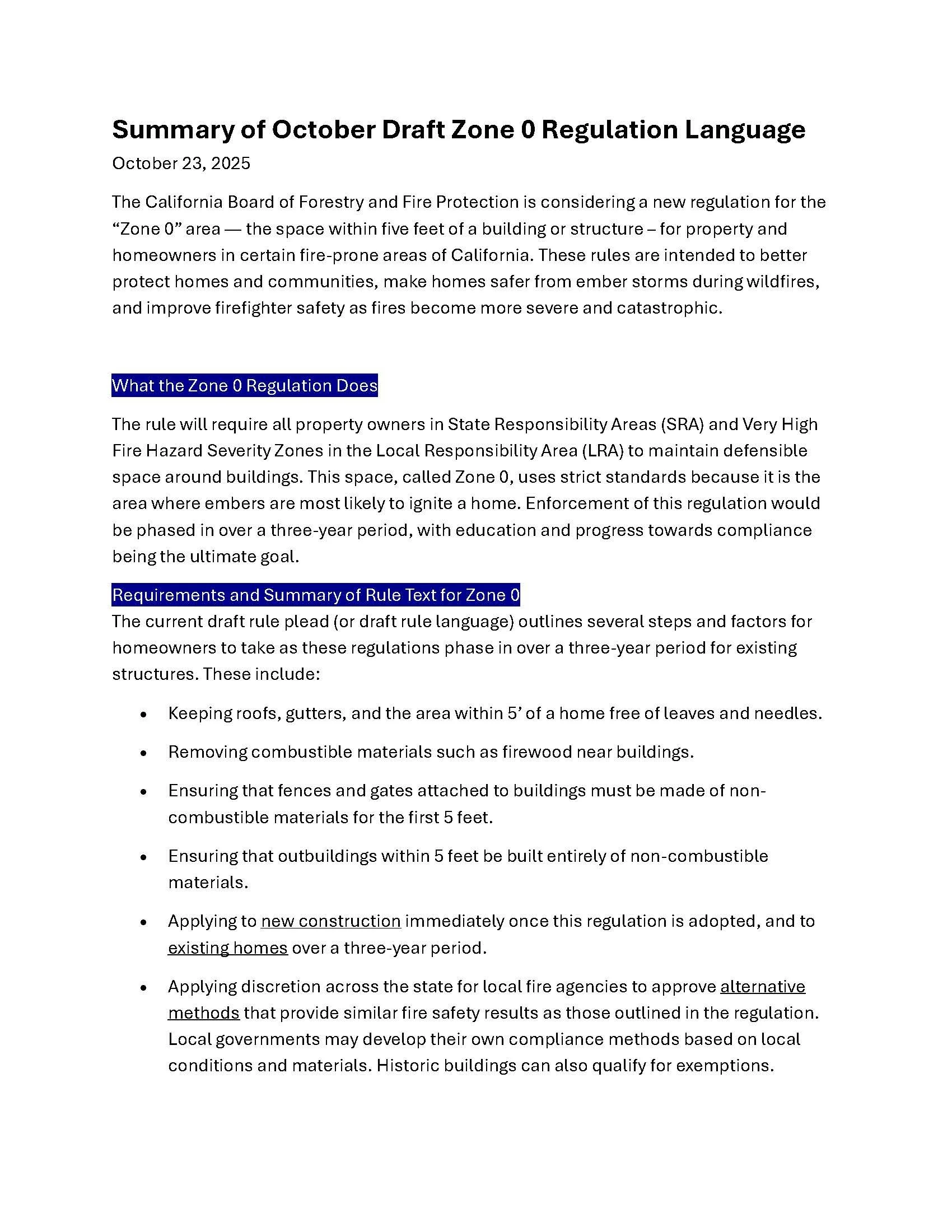 August draft of Zone 0 requirements under consideration by the Board of Forestry and Fire Safety download file - click here