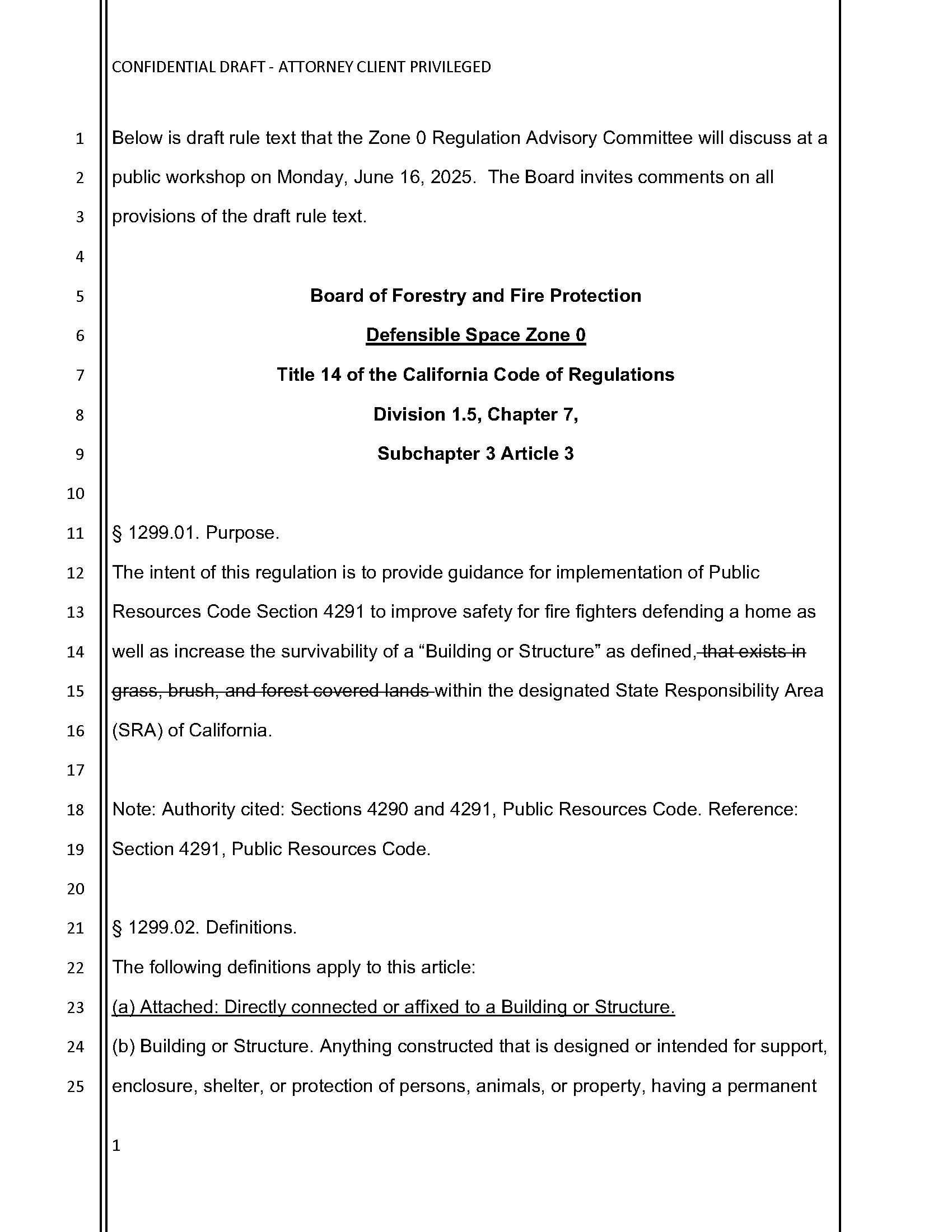 June draft of Zone 0 requirements under consideration by the Board of Forestry and Fire Safety download file - click here